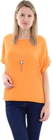 Malito Damen Blusenshirt mit Kette| kurzärmeliges Oberteil mit modischer Raffung | Hemdbluse - Tunika - modern 1144 (orange)