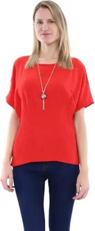Malito Damen Blusenshirt mit Kette| kurzärmeliges Oberteil mit modischer Raffung | Hemdbluse - Tunika - modern 1144 (rot)