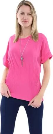 Malito Damen Blusenshirt mit Kette| Oberteil mit modischer Raffung | Hemdbluse - Tunika - modern 1144 (pink)