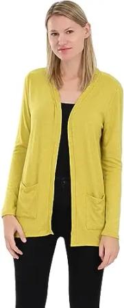 Malito - Damen Cardigan - Strickjacke mit Taschen - dünne Jacke - feiner Langarm Strickcardigan - Weste 2243 (gelb, XL)