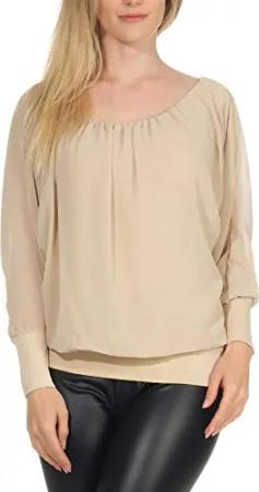 Malito Damen Chiffon Langarm Bluse | Tunika mit weiten Ärmeln | Blusenshirt mit breitem Bund | elegant - schick 6291 (beige)