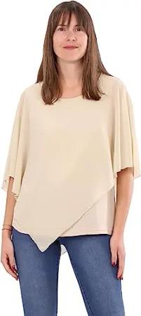 Malito - Damen Chiffonbluse - kaschierendes Fledermaus Shirt - asymmetrische Tunika mit lockerer Passform - blickdichte Bluse im Poncho Style 10732 (34-44 | beige)