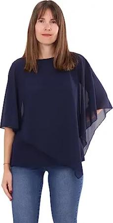 Malito - Damen Chiffonbluse - kaschierendes Fledermaus Shirt - asymmetrische Tunika mit lockerer Passform - blickdichte Bluse im Poncho Style 10732 (34-44 | dunkelblau)