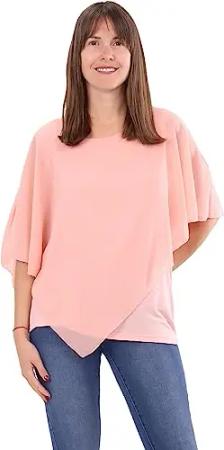 Malito - Damen Chiffonbluse - kaschierendes Fledermaus Shirt - asymmetrische Tunika mit lockerer Passform - blickdichte Bluse im Poncho Style 10732 (34-44 | rosa)