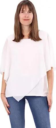 Malito - Damen Chiffonbluse - kaschierendes Fledermaus Shirt - asymmetrische Tunika mit lockerer Passform - blickdichte Bluse im Poncho Style 10732 (34-44 | weiß)