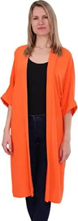 Malito - Damen Kimono - Cardigan für den Sommer - Tunika Poncho Blazer für den Alltag - Strand Party Bikini Cover Up Basic 2342 (Größe: 34-42 orange)