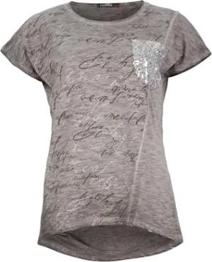 Malito - Damen Kurzarm T-Shirt - meliertes Shirt mit Pailetten-Tasche - Lettering-Print Oberteil - Sommershirt Rundhals Streetwear Look 46734 - (Grau, L)