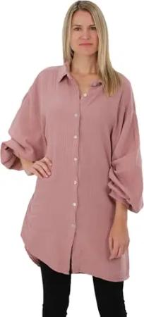 Malito Damen Musselin Bluse - Langarm Blusenhemd - langes Oversize Hemd aus Baumwolle - Long Shirt Strand Cover Up 20914 (Fango 34-46)