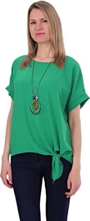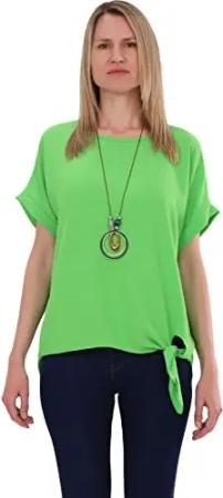 Malito - Damen Oversize Bluse - kurzärmlige Frauen Tunika mit bequemen Schnitt - Elegantes Blusenshirt mit Bindeknoten - lässig & locker 10508 (Größe: 34-42 hellgrün)