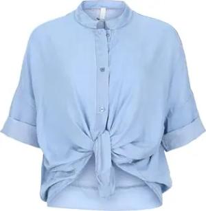 Malito - Damen Oversized-Bluse - Denimbluse mit Knotendetail - hautfreundliche Bluse in Jeans-Optik - Kurzarm Jeansbluse 2309 - Hellblau