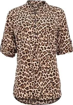 Malito - Damen Schlupfbluse - Langarm Bluse mit Animalprint - krempelbare Tunika Leopard - Blusenshirt Büro & Alltag 2310 - Leo 3