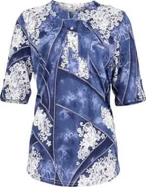 Malito Damen Bluse mit Print | Tunika mit ¾ Armen | Blusenshirt auch Langarm tragbar | Elegant - Shirt 6703 (Jeansblau)