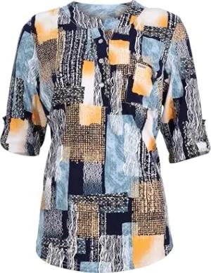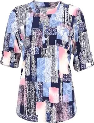 Malito Damen Bluse mit Print | Tunika mit ¾ Armen | Blusenshirt auch Langarm tragbar | Elegant - Shirt 6703 (dunkelblau)