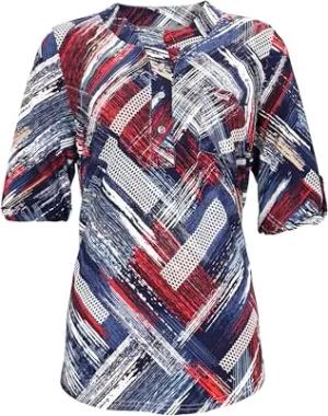 Malito - Damen Schlupfbluse - legere Stretch Bluse - Elegantes Blusenshirt mit 3/4 Arm - Basic Damenbluse 6666 - (Rot-Blau-Weiß 3XL)