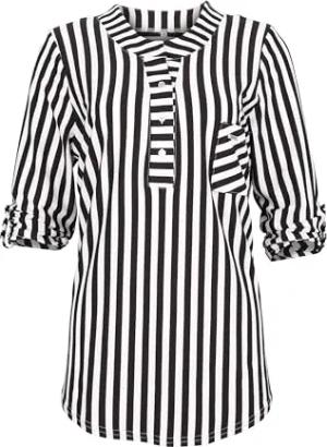 Malito - Damen Schlupfbluse - legere Stretch Bluse - Elegantes Blusenshirt mit 3/4 Arm - Basic Damenbluse 6666 - (Schwarz-Streifen M)