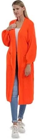 Malito Damen Strickmantel | schicker Cardigan | Moderne Wollmantel | Lange Strickjacke - Oberteil 3151 (orange)