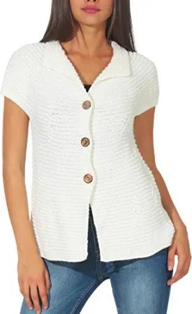 Malito - Damen Strickweste - Langer Kurzarm Cardigan - Basic Strickjacke mit Knöpfen 5060 - (34-38 weiß)