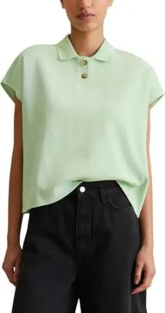 Damen Kurzarm-Poloshirt aus Bio-Baumwolle Wide Fit, Grün (Mint Mist), XS