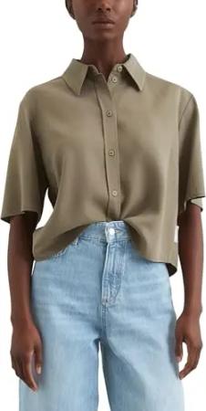 Damen Kurzarmbluse mit Kentkragen Cropped, Grün (Dusky Green), XL