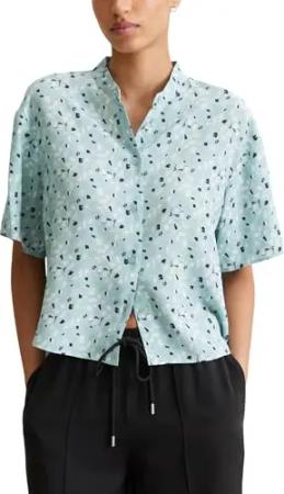 Damen Kurzarmbluse mit Stehkragen Cropped, Mehrfarbig (Light Blue Multi 05), L