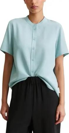 Damen Kurzarmbluse mit Stehkragen Regular Fit, Blau (Blue Fog), XS