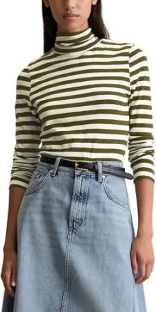 Marc OߴPolo Denim Damen Langarmshirt aus Bio-Baumwolle gestreift, Grün (Dark Green Multi 02), XL
