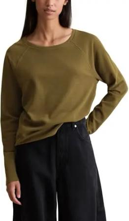 Marc OߴPolo Denim Damen Langarmshirt mit Rundhalsausschnitt Regular Fit, Grün (Desert Sage), XL