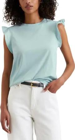 Damen T-Shirt mit Ärmel-Volant Regular Fit, Blau (Blue Fog), S