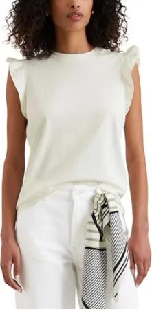 Damen T-Shirt mit Ärmel-Volant Regular Fit, Weiß (Silky White), XL