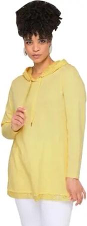Damen große Größen Übergrößen Plus Size Langarmshirt, Kapuze, Spitzen-Details Sorbet gelb 50 832076603-50