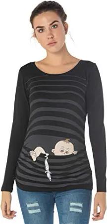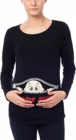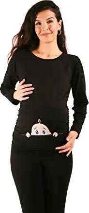 Neugieriges Baby - Umstandsmode Umstandsshirt mit Motiv Sweatshirt Schwangerschaftsshirt für die Schwangerschaft, Langarm (Schwarz, Small)