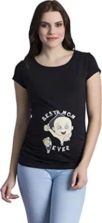 Best Mom Ever - Lustige witzige süße Umstandsmode mit Motiv Umstandsshirt für die Schwangerschaft T-Shirt Schwangerschaftsshirt, Kurzarm (Schwarz, Medium)