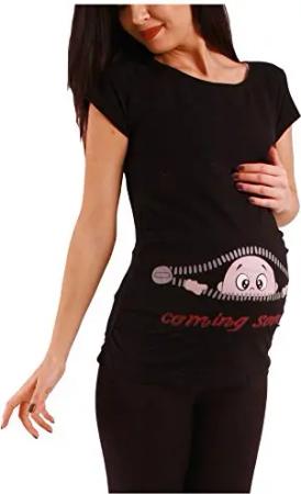 Coming Soon - Lustige witzige süße Umstandsmode mit Motiv Umstandsshirt für die Schwangerschaft T-Shirt Schwangerschaftsshirt, Kurzarm (Schwarz, Small)