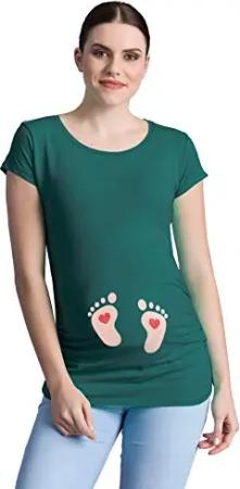 Fußabdrücke Baby mit Herz - Lustige witzige süße Umstandsmode mit Motiv Umstandsshirt für die Schwangerschaft T-Shirt Schwangerschaftsshirt, Kurzarm (Dunkelgrün, Small)