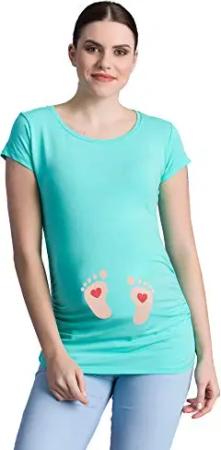 Fußabdrücke Baby mit Herz - Lustige witzige süße Umstandsmode mit Motiv Umstandsshirt für die Schwangerschaft T-Shirt Schwangerschaftsshirt, Kurzarm (Mint, Medium)