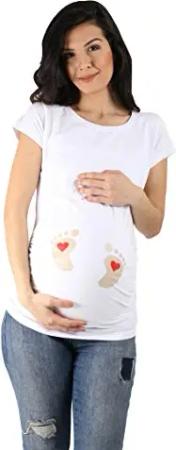 Fußabdrücke Baby mit Herz - Lustige witzige süße Umstandsmode mit Motiv Umstandsshirt für die Schwangerschaft T-Shirt Schwangerschaftsshirt, Kurzarm (Weiß, Small)