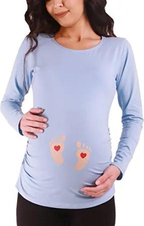 Fußabdrücke Baby mit Herz - Süße Umstandsmode Motiv Umstandsshirt Sweatshirt Schwangerschaftsshirt für die Schwangerschaft, Langarm (Babyblau, Medium)