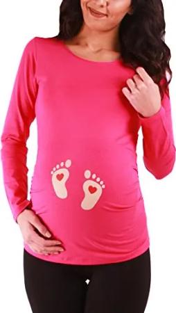 Witzige süße Umstandsmode T-Shirt mit Motiv Schwangerschaft Geschenk - Langarm (Koralle, Medium)