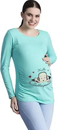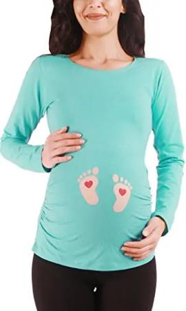 Witzige süße Umstandsmode T-Shirt mit Motiv Schwangerschaft Geschenk - Langarm (Mint, Medium)