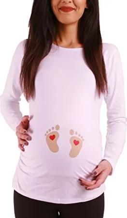 Fußabdrücke Baby mit Herz - Süße Umstandsmode Motiv Umstandsshirt Sweatshirt Schwangerschaftsshirt für die Schwangerschaft, Langarm (Weiß, Small)