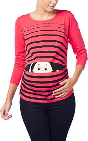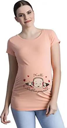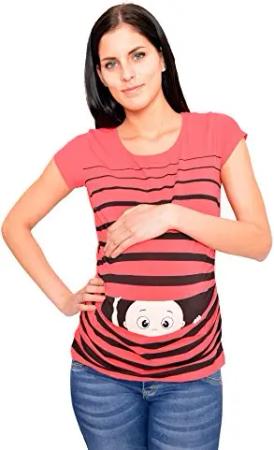 Witzige süße Umstandsmode T-Shirt mit Motiv Schwangerschaft Geschenk - Kurzarm (Koralle, X-Large)