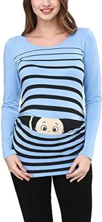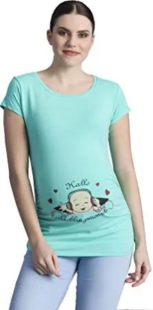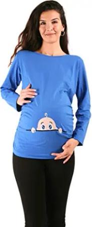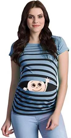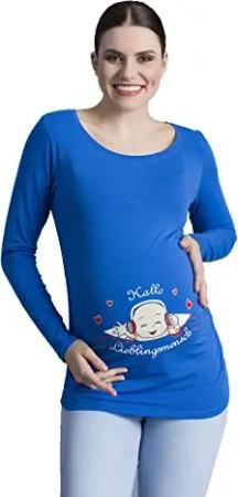 Witzige süße Umstandsmode T-Shirt mit Motiv Schwangerschaft Geschenk - Kurzarm (Blau, Small)
