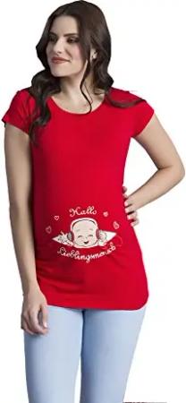 Hallo Lieblingsmensch - Lustige witzige süße Umstandsmode mit Motiv Umstandsshirt für die Schwangerschaft T-Shirt Schwangerschaftsshirt, Kurzarm (Rot, Medium)