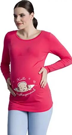 Hallo Lieblingsmensch - Umstandsmode Umstandsshirt mit Motiv Sweatshirt Schwangerschaftsshirt für die Schwangerschaft, Langarm (Rosa, Small)