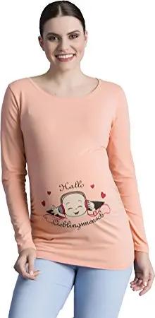 Hallo Lieblingsmensch - Umstandsmode Umstandsshirt mit Motiv Sweatshirt Schwangerschaftsshirt für die Schwangerschaft, Langarm (Lachsfarbe, Medium)