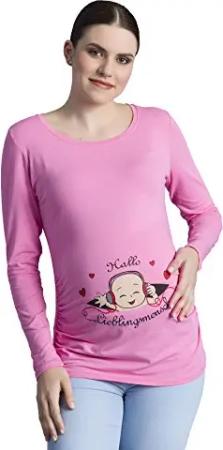 Hallo Lieblingsmensch - Lustige witzige süße Umstandsmode mit Motiv Umstandsshirt für die Schwangerschaft T-Shirt Schwangerschaftsshirt, Kurzarm (Rosa, Large)