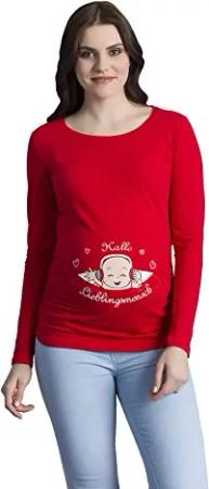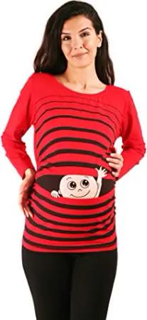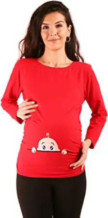 Neugieriges Baby - Umstandsmode Umstandsshirt mit Motiv Sweatshirt Schwangerschaftsshirt für die Schwangerschaft, Langarm (Rot, Small)