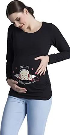 Witzige süße Umstandsmode T-Shirt mit Motiv Schwangerschaft Geschenk - Langarm (Schwarz, Small)