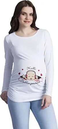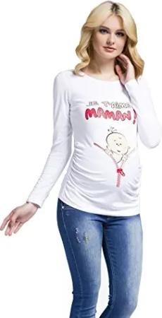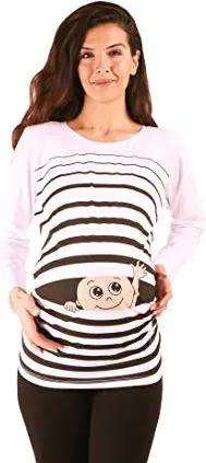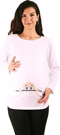 Neugieriges Baby - Umstandsmode Umstandsshirt mit Motiv Sweatshirt Schwangerschaftsshirt für die Schwangerschaft, Langarm (Weiß, Medium)