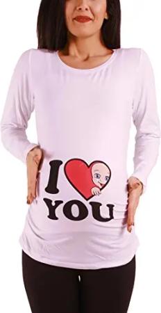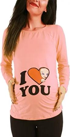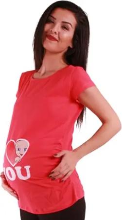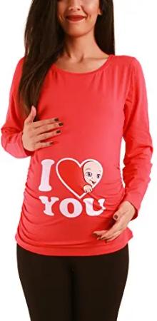 I Love You - Lustige witzige süße Umstandsmode mit Motiv Umstandsshirt für die Schwangerschaft T-Shirt Schwangerschaftsshirt, Kurzarm (Koralle, Small)